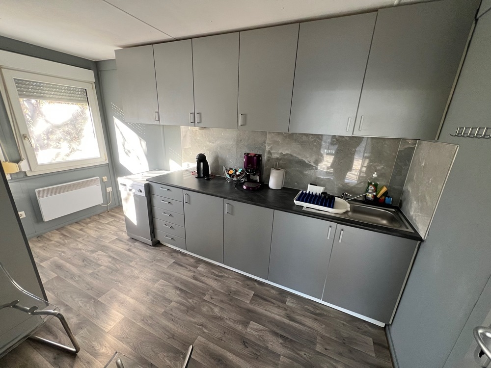 Győr-Gyárváros rendkívül kedvelt, klasszikus részén, Ipari Parktól, M1-es autópályától, Belvárostól alig pár perces autótávolságra, aszfaltos útról megközelíthető, ipari kamerával és térvilágítással ellátott, 55.000 m2-es (5,5 ha) telekből, leválasztott, körbekerített, – 4 db személygépkocsi pakolását biztosító – térkövezett, 250 m2-nyi területen lévő, 22,08 m2-es üzlettérből/irodából, továbbá 4,83 m2-es irodából álló, saját konyha – étkezővel és saját szociális egységgel felszerelt, összesen 40 m2-es jelentős részben bútorozott, KLIMATIZÁLT 3 db 20 lábas konténerből álló iroda/bemutatóterem/üzlethelyiség sokrétű felhasználhatóság lehetőségével kiadó!
